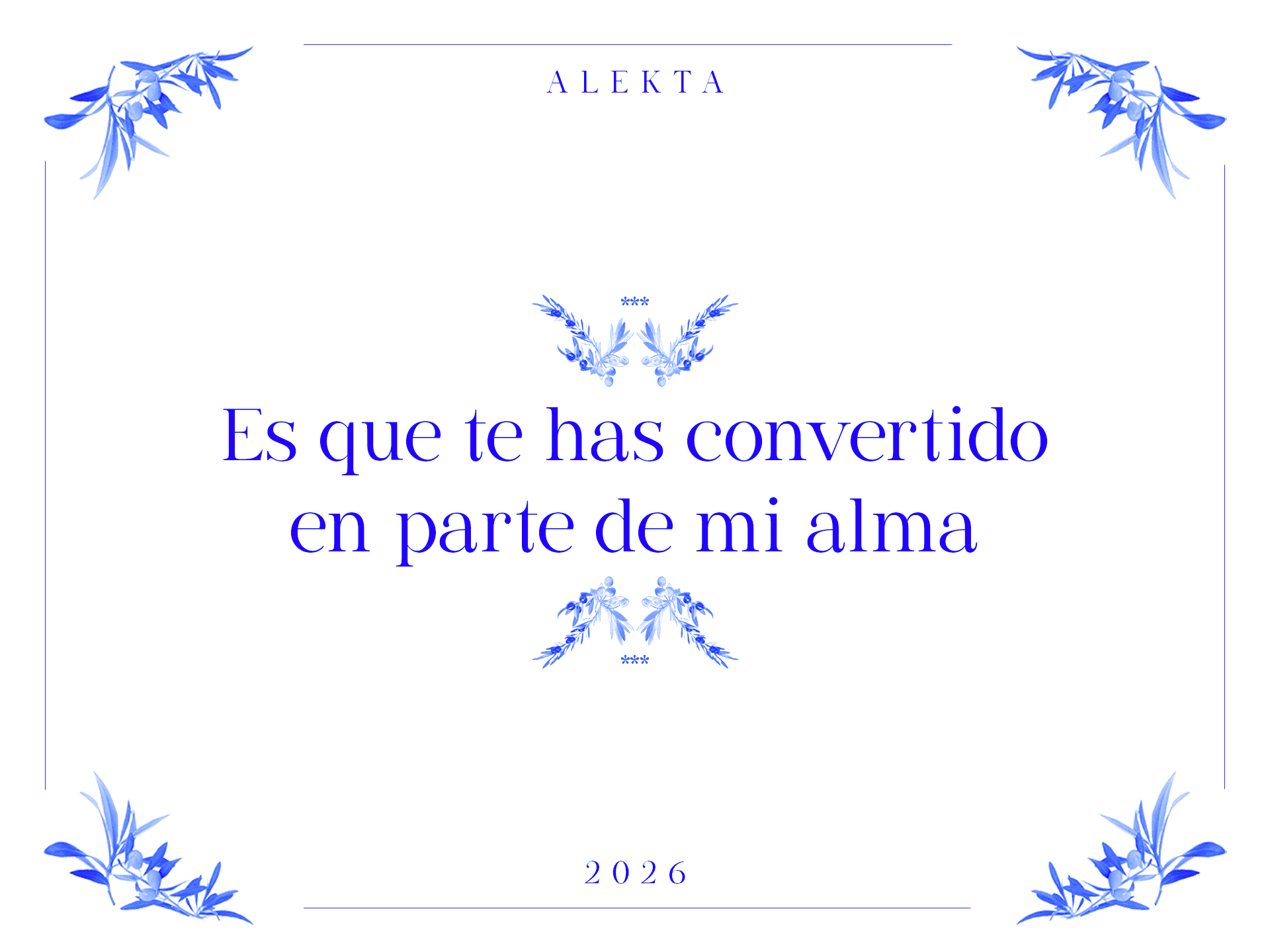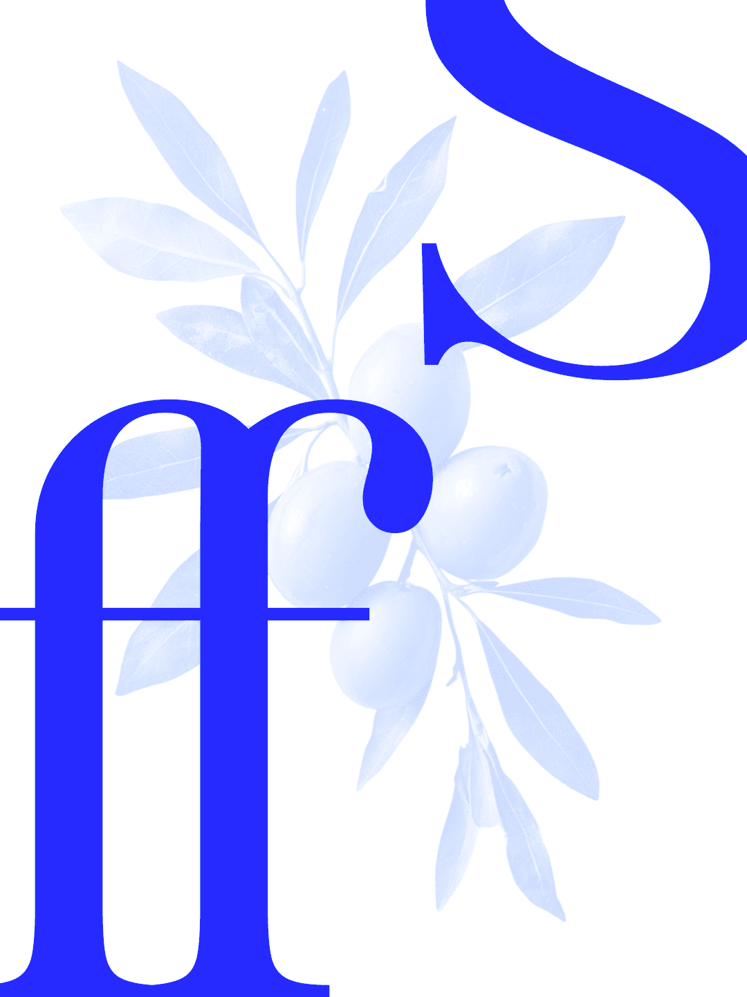 Nos key visuals, a tipografia ganha um universo visual próprio. A paleta se restringe ao azul e branco, combinada a composições com ramos de oliveira, evocando a atmosfera da costa mediterrânea, com referências ao mar de Santorini e à paisagem de Capri. O resultado traduz visualmente o caráter refrescante e romântico da fonte.