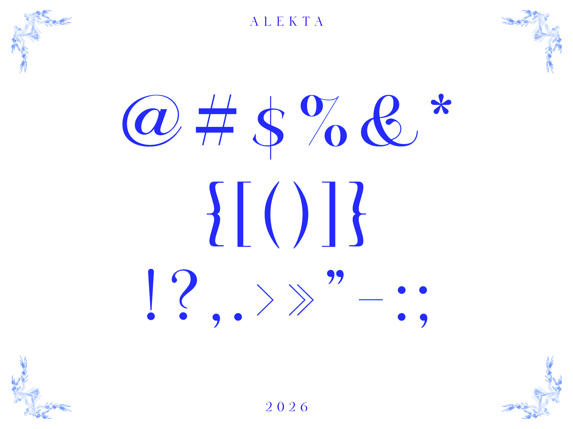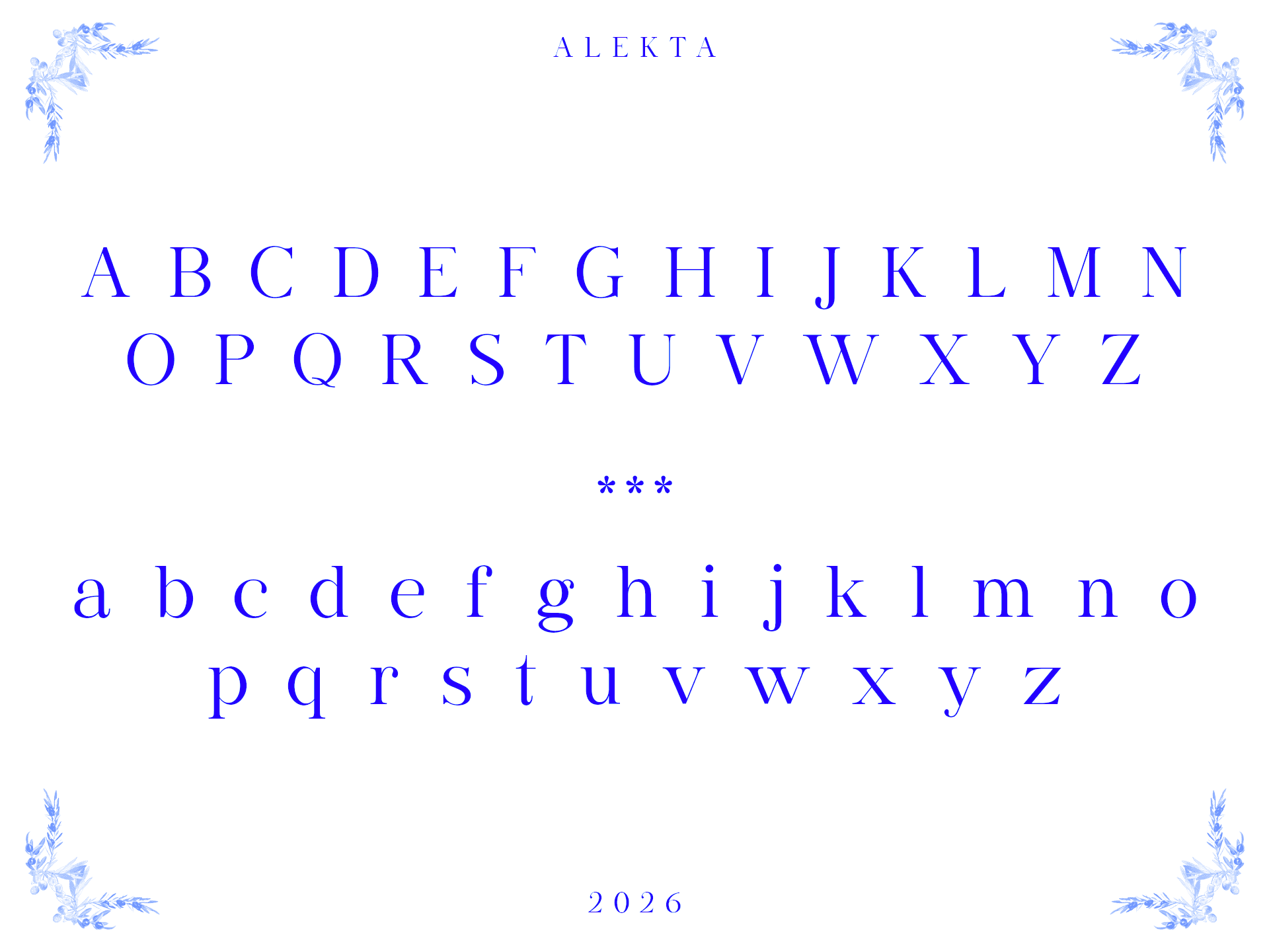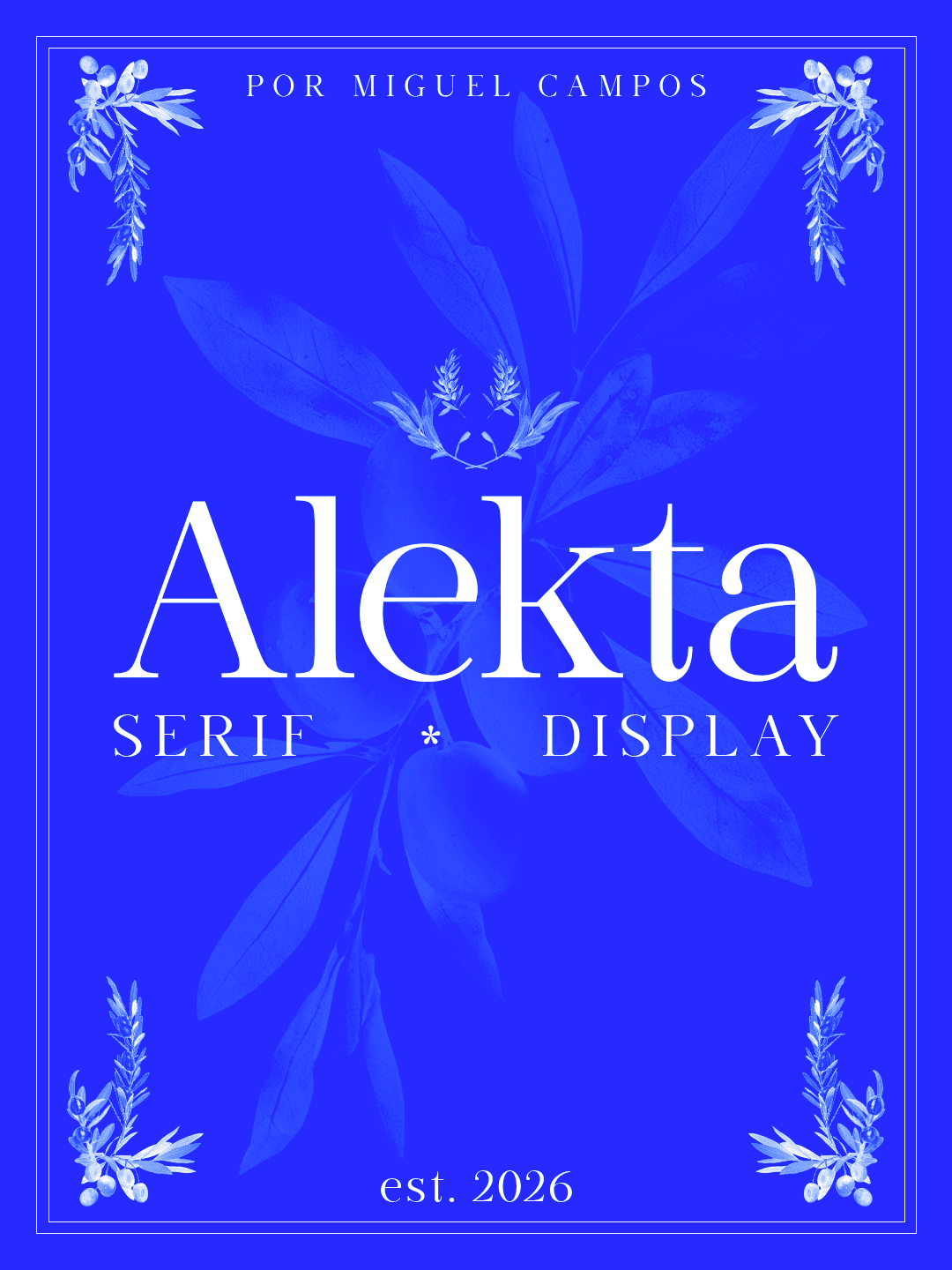 Alekta parte de referências em fontes old style e humanistas, trazendo detalhes levemente exagerados e contrastes marcantes. A intenção foi revisitar estilos tradicionalmente vistos como antiquados, reinterpretando-os sob uma ótica pós-moderna e sofisticada, sem perder legibilidade ou refinamento.