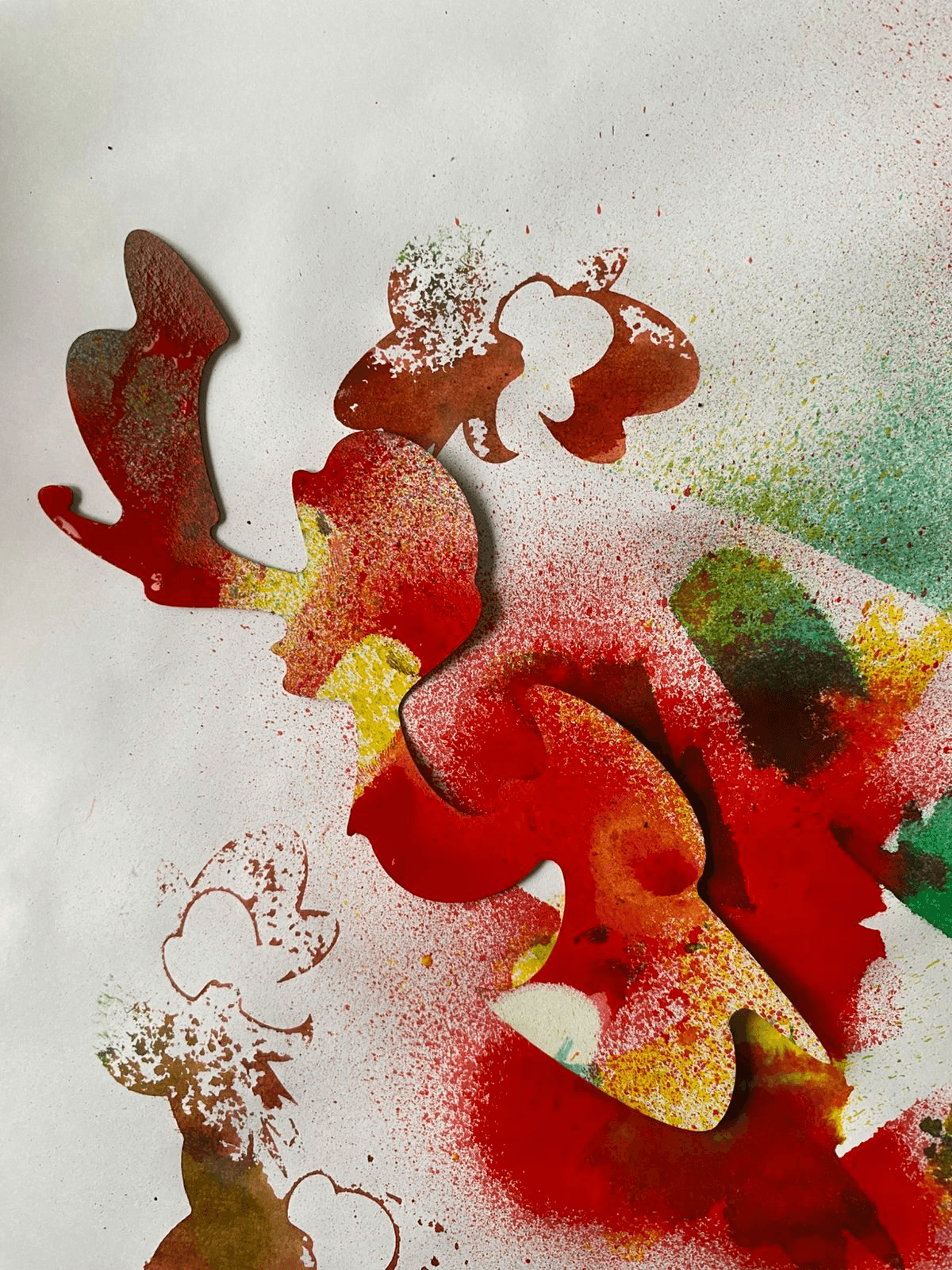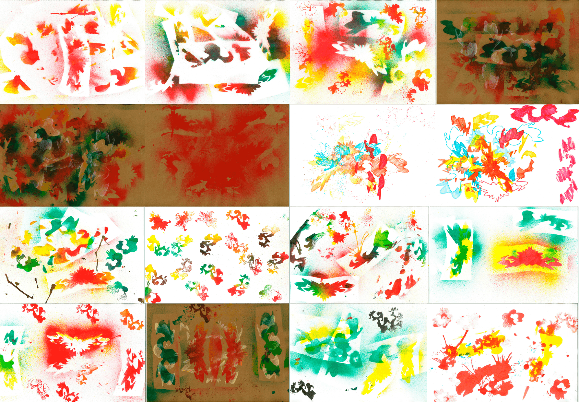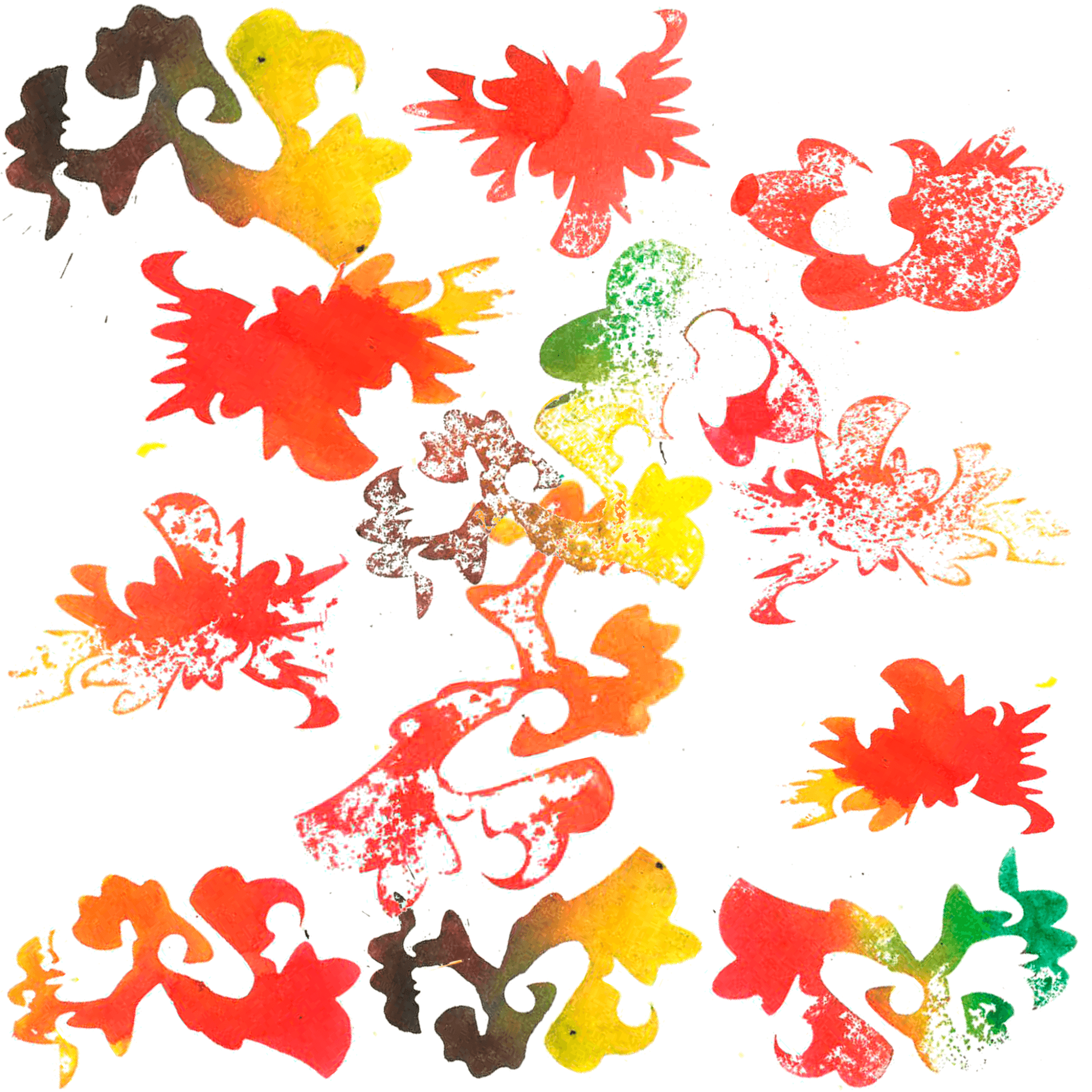 O processo começou com a criação de carimbos e stencils, recortados em madeira e papel, usados para gerar formas orgânicas e texturas únicas. Cada carimbo foi pensado como um símbolo de um território: a terra, o mar, o corpo, o sagrado. Essas marcas foram aplicadas manualmente sobre o papel, resultando em composições que depois foram manipuladas digitalmente, dando origem a um universo gráfico vivo e simbólico. O diálogo entre o toque artesanal e o acabamento digital constrói o principal eixo do projeto, um equilíbrio entre o sensível e o contemporâneo.