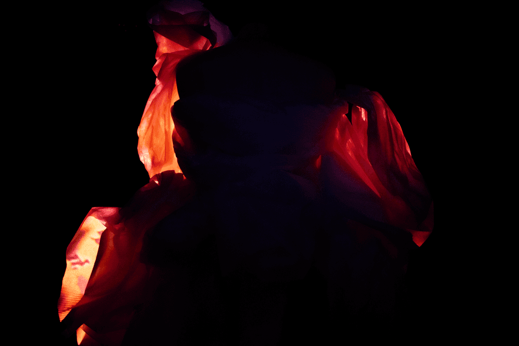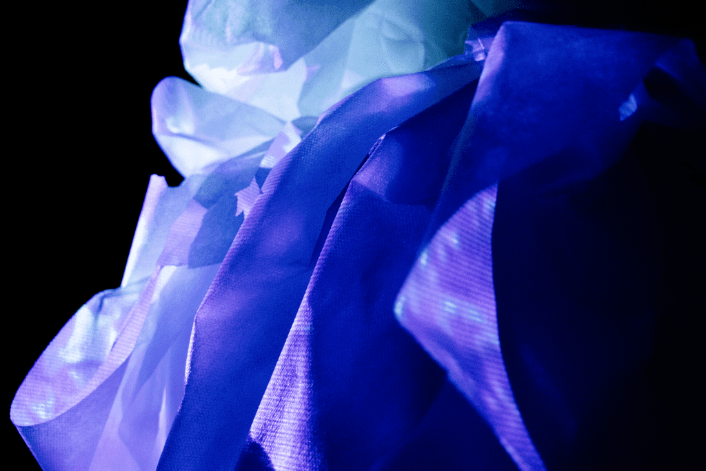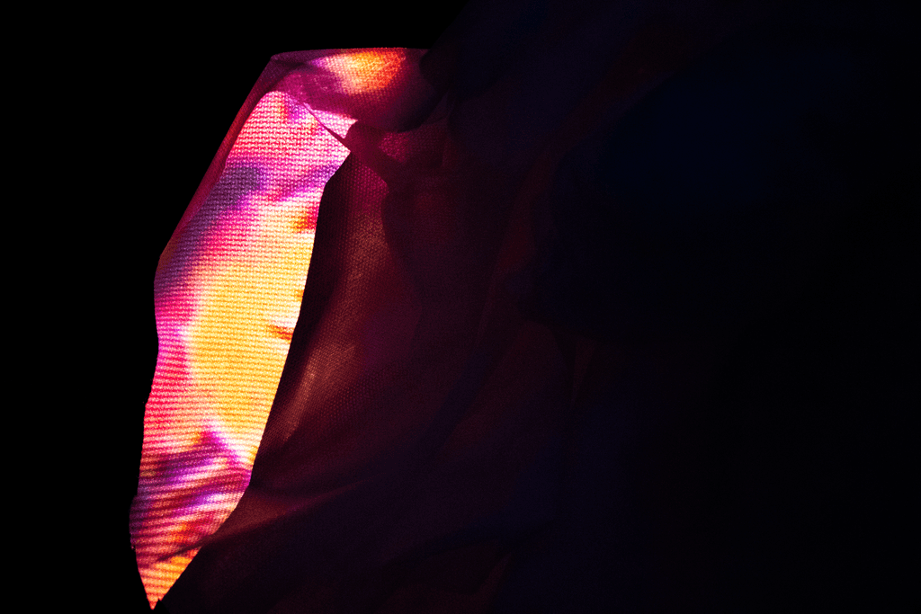 Durante o processo, foram realizadas fotografias que compõem o editorial do projeto, registrando os instantes em que luz e movimento se encontraram para formar novas imagens. Cada clique captura o efêmero: fragmentos de cor, textura e som que revelam o espírito do projeto, uma moda que se move, vibra e conta histórias através da superfície.
