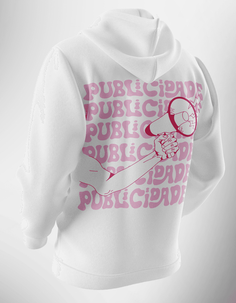Com letterings e estampas finalizados, realizamos a montagem digital das peças. Mockups foram criados para apresentação à gestão, mostrando a disposição de textos e imagens nas roupas, garantindo clareza e impacto visual.