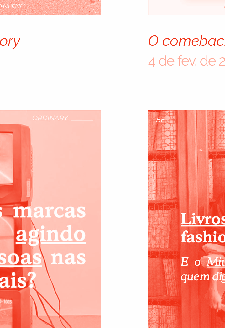 Na página de Social Media, organizamos os vídeos em um mural dinâmico, em que vários vídeos tocam ao mesmo tempo, sem som, para criar uma experiência dinâmica e imersiva. Caso o usuário busque ouvir o conteúdo do vídeo, basta ativar o som nos controles.